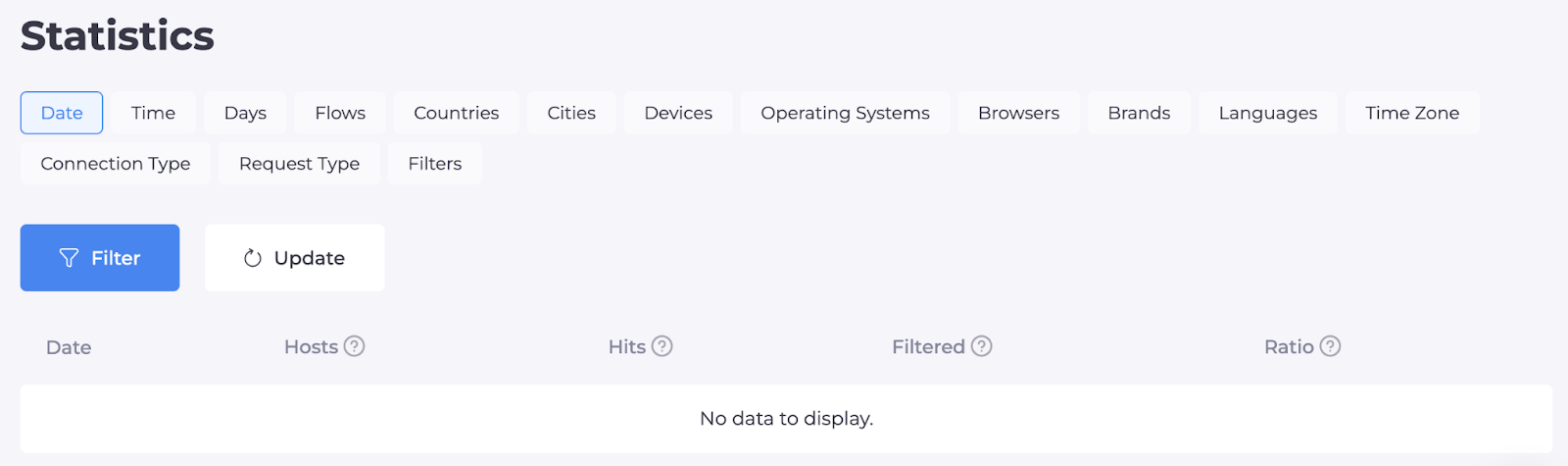 Во вкладке “Статистика” можно посмотреть статистику нашего потока: сколько было кликов, сколько отфильтровано.